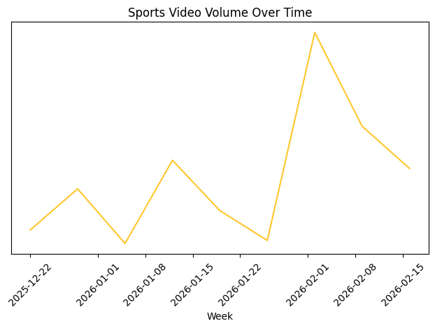 Sports content dropped 34% week over week. Soccer fell 49%, college basketball 47%, and winter Olympic sports 61%.